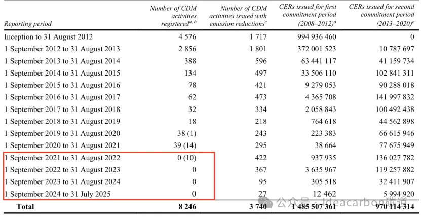 截至2025年7月31日,共签发了约24.6亿吨CER(1个CER相当于1吨二氧化碳当量的减排量)。