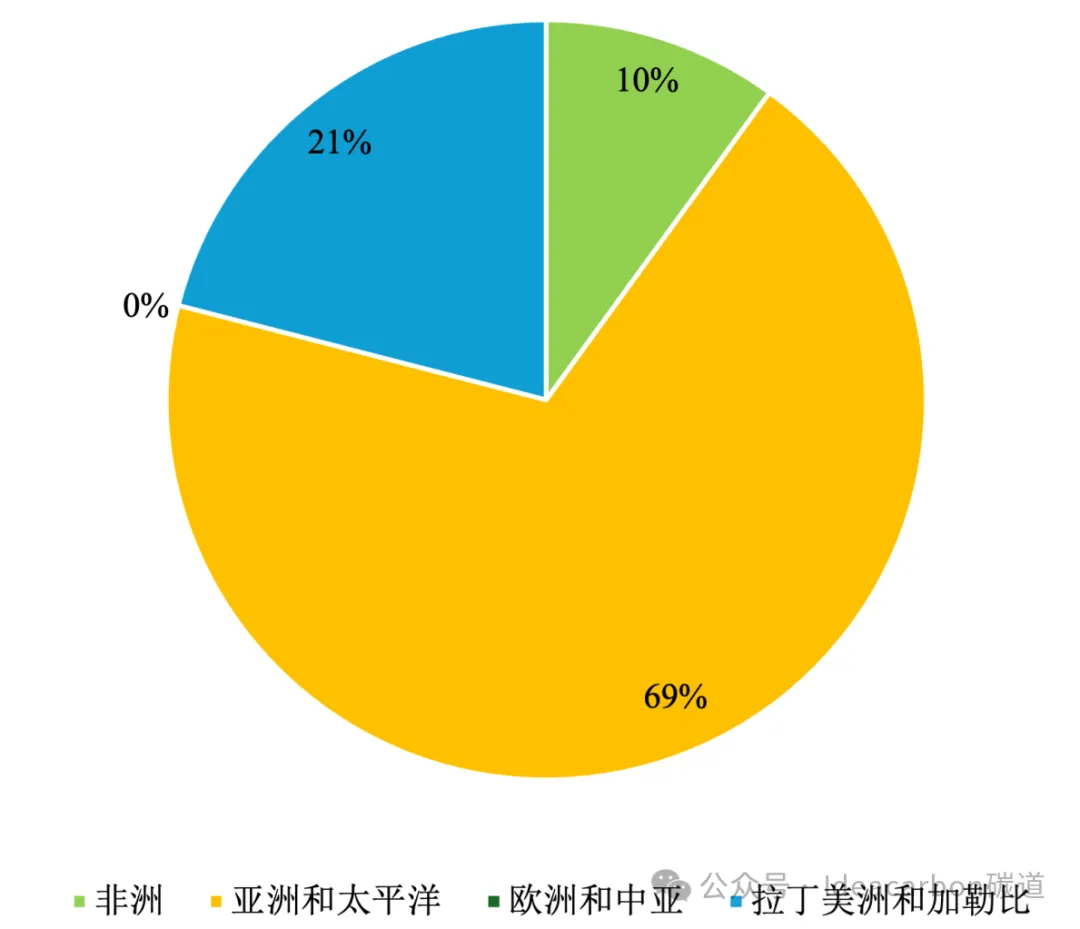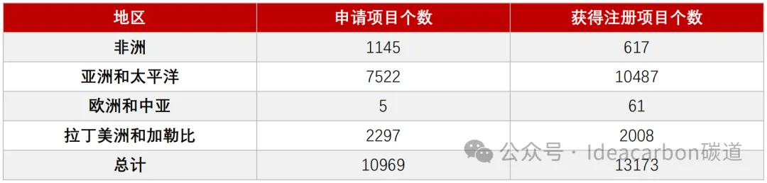 申请为CDM的项目主要集中在亚太,占比最高,其他地区比如非洲、拉美占比低,欧洲中亚几乎没有。