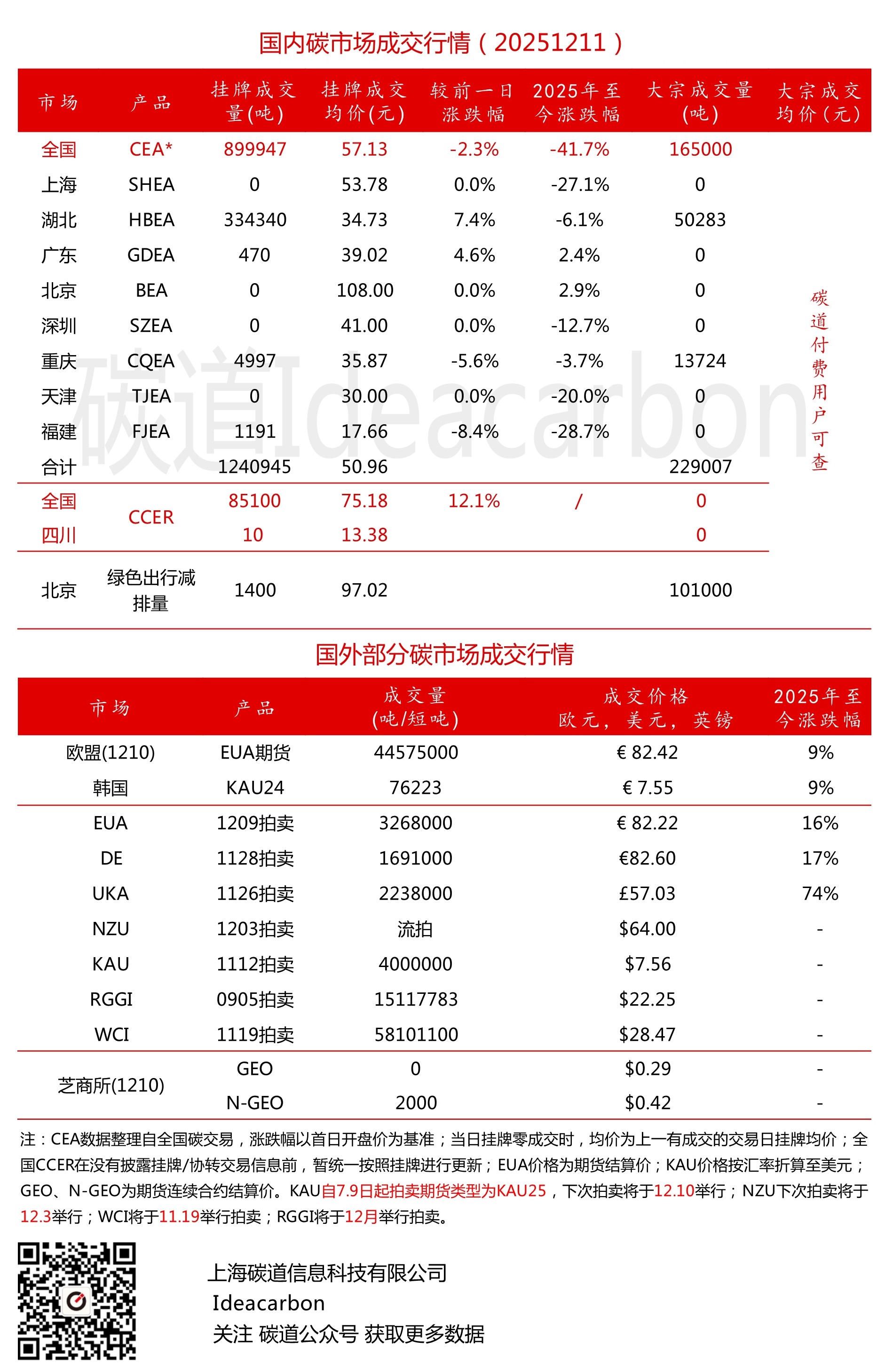 每日碳市场成交行情(20251211)